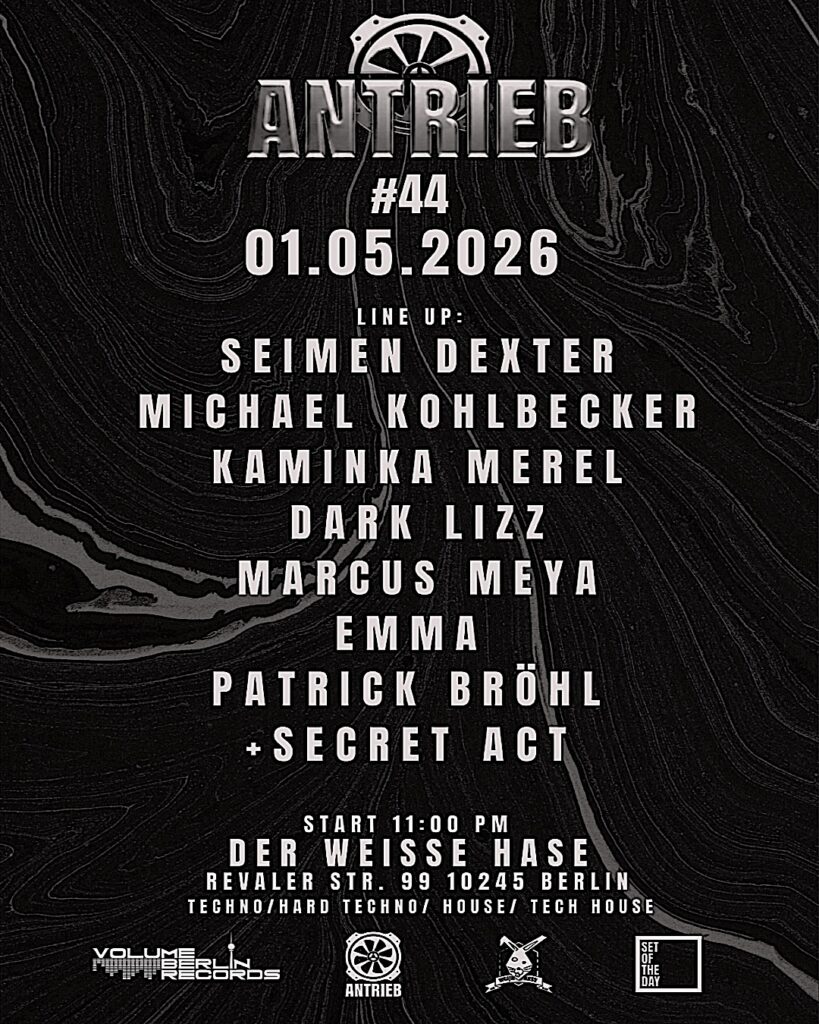 Wir sind mehr als nur ein Musiklabel – wir sind eine Techno-Community mitten in Berlin. Unsere Artists bringen die härtesten Beats und tiefsten Basslines direkt auf die Dancefloors dieser Stadt. Von unseren legendären ANTRIEB-Events bis hin zu brandneuen Releases – hier lebt der Techno-Spirit weiter.